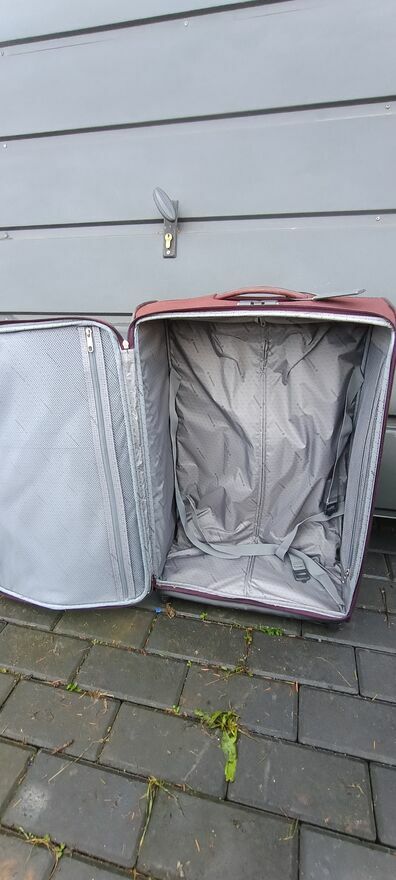 Sprzedam dużą i bardzo pojemną walizkę na kółkach, idealną na dłuższe wyjazdy.Walizka jest w pełni sprawna – kółka kręcą lekko, rączka wysuwa się bez oporów, zamki chodzą płynnie.